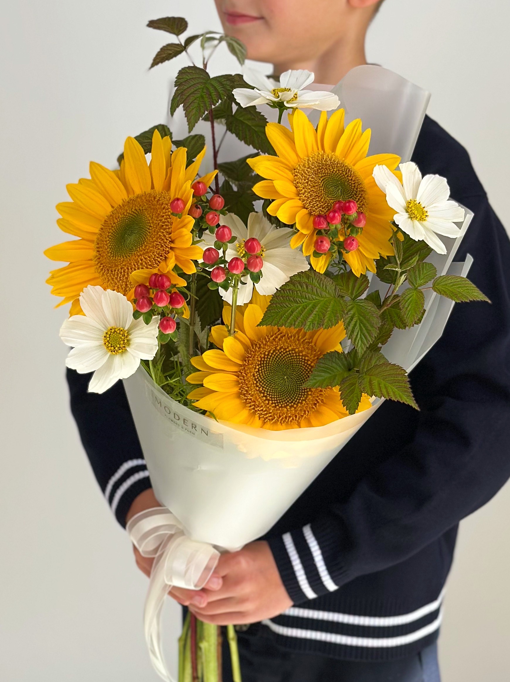 —БУКЕТ С ПОДСОЛНУХАМИ И КОСМЕЕЙ