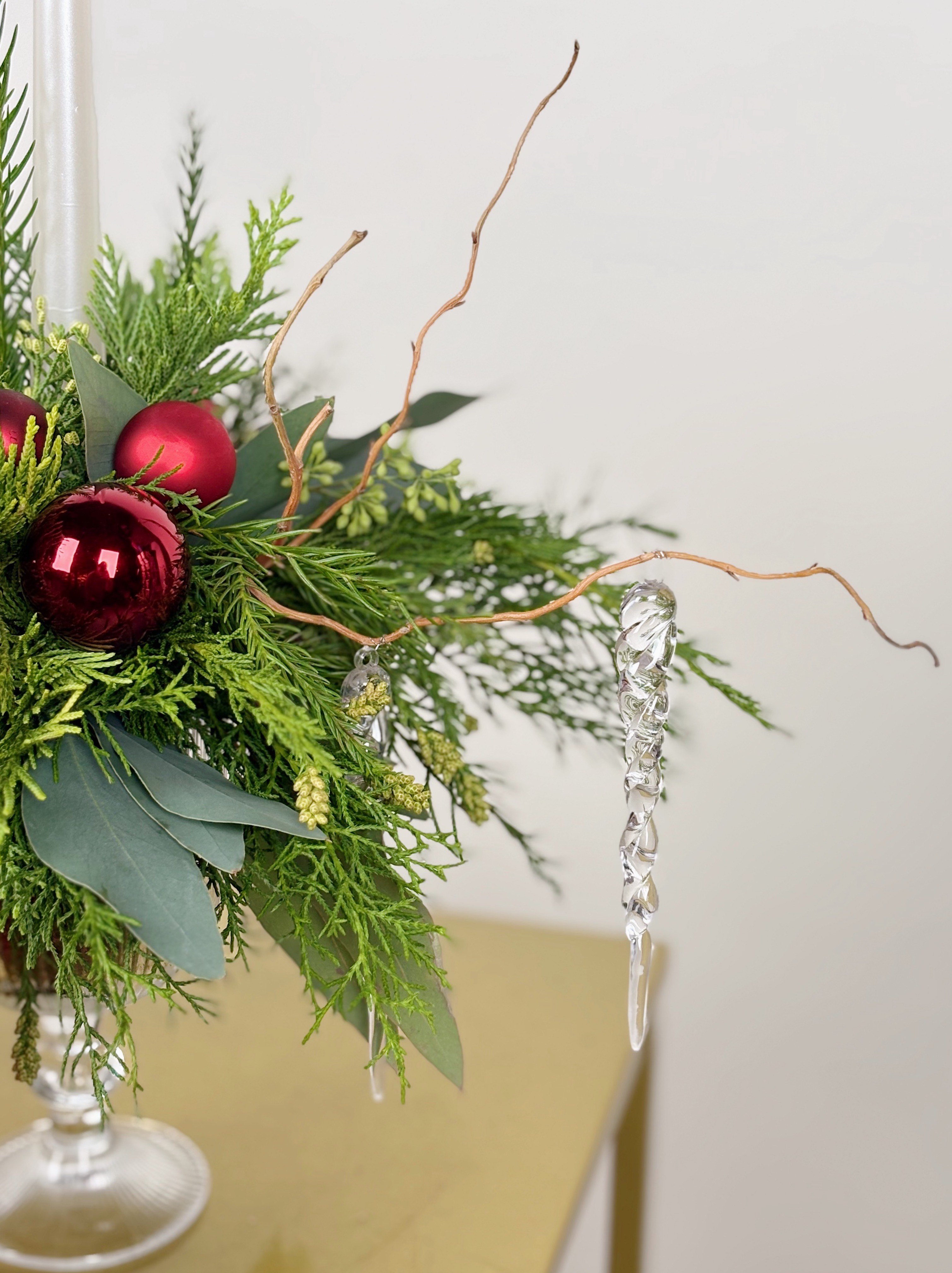 ХВОЯ В БОКАЛЕ СО СВЕЧЕЙ В КРАСНОМ ОТТЕНКЕ