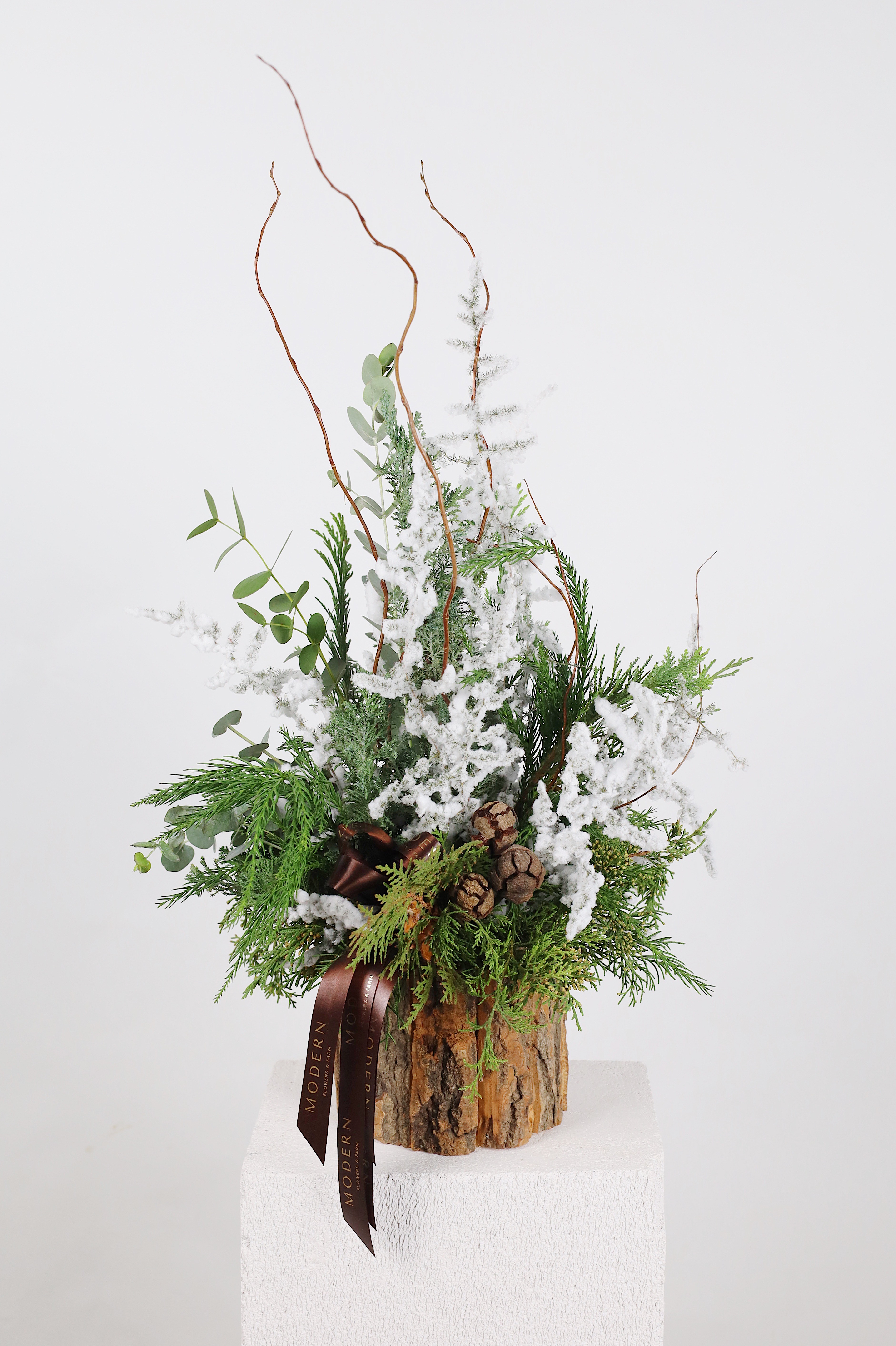 —ХВОЙНАЯ КОМПОЗИЦИЯ В ДЕРЕВЯННОМ КАШПО