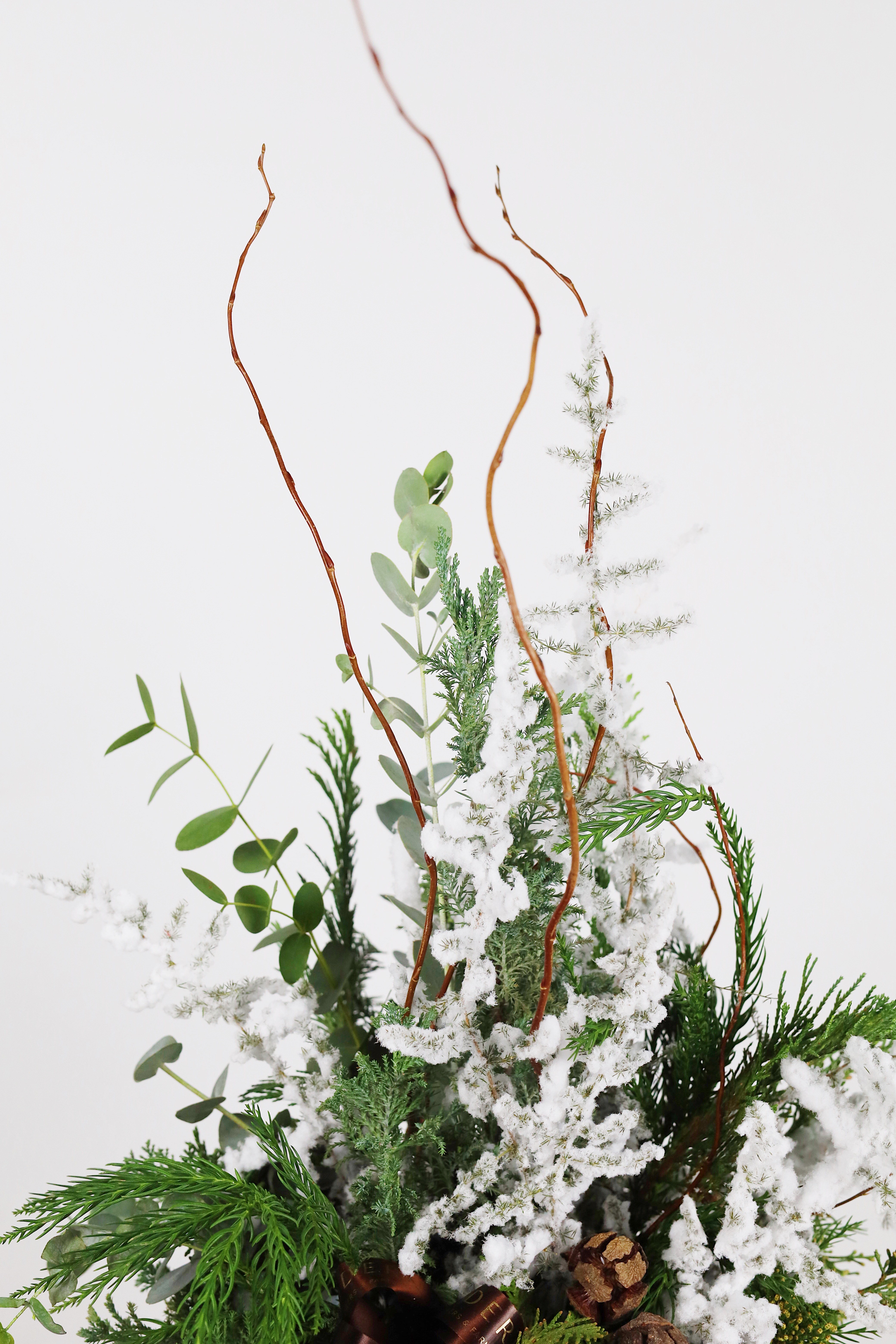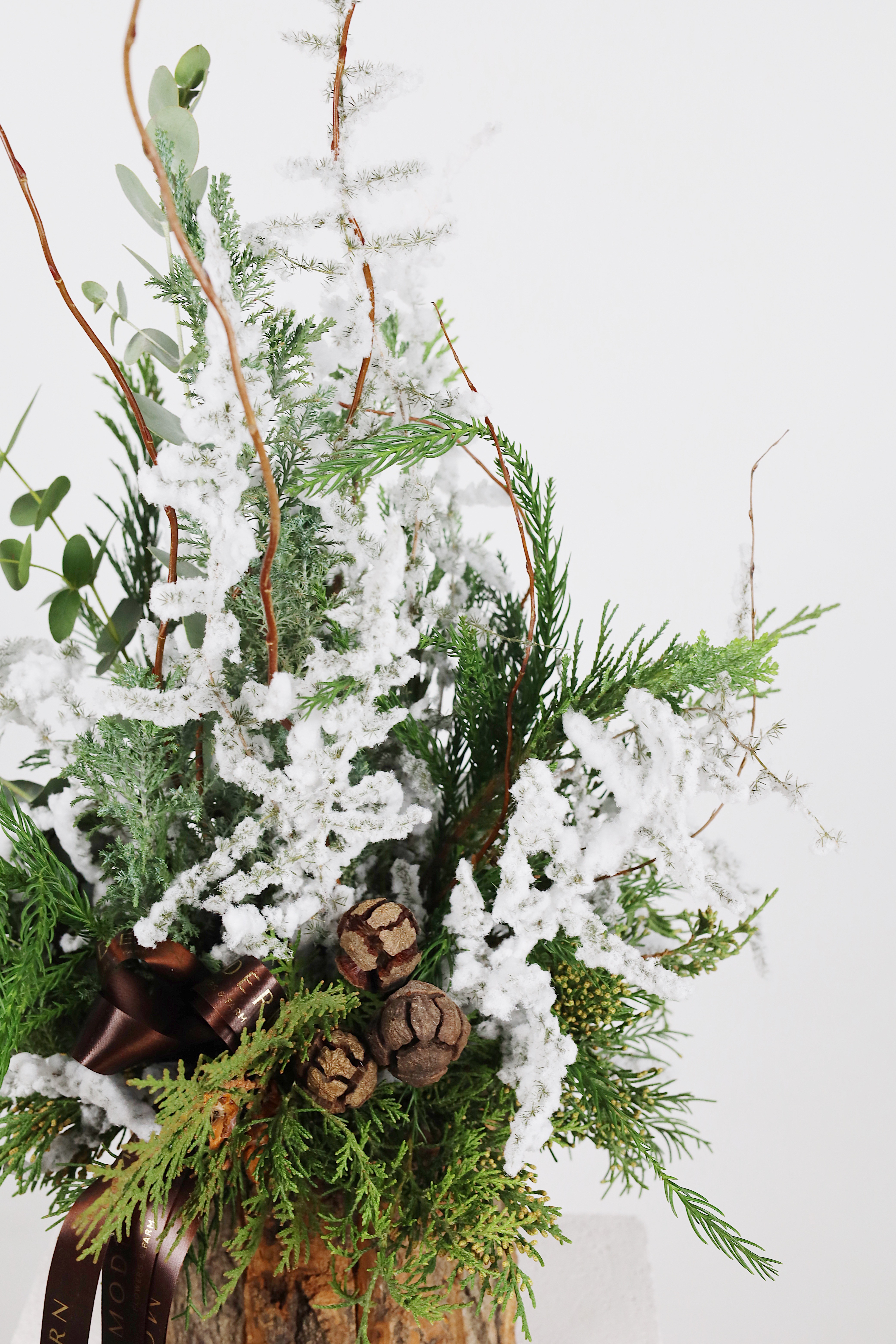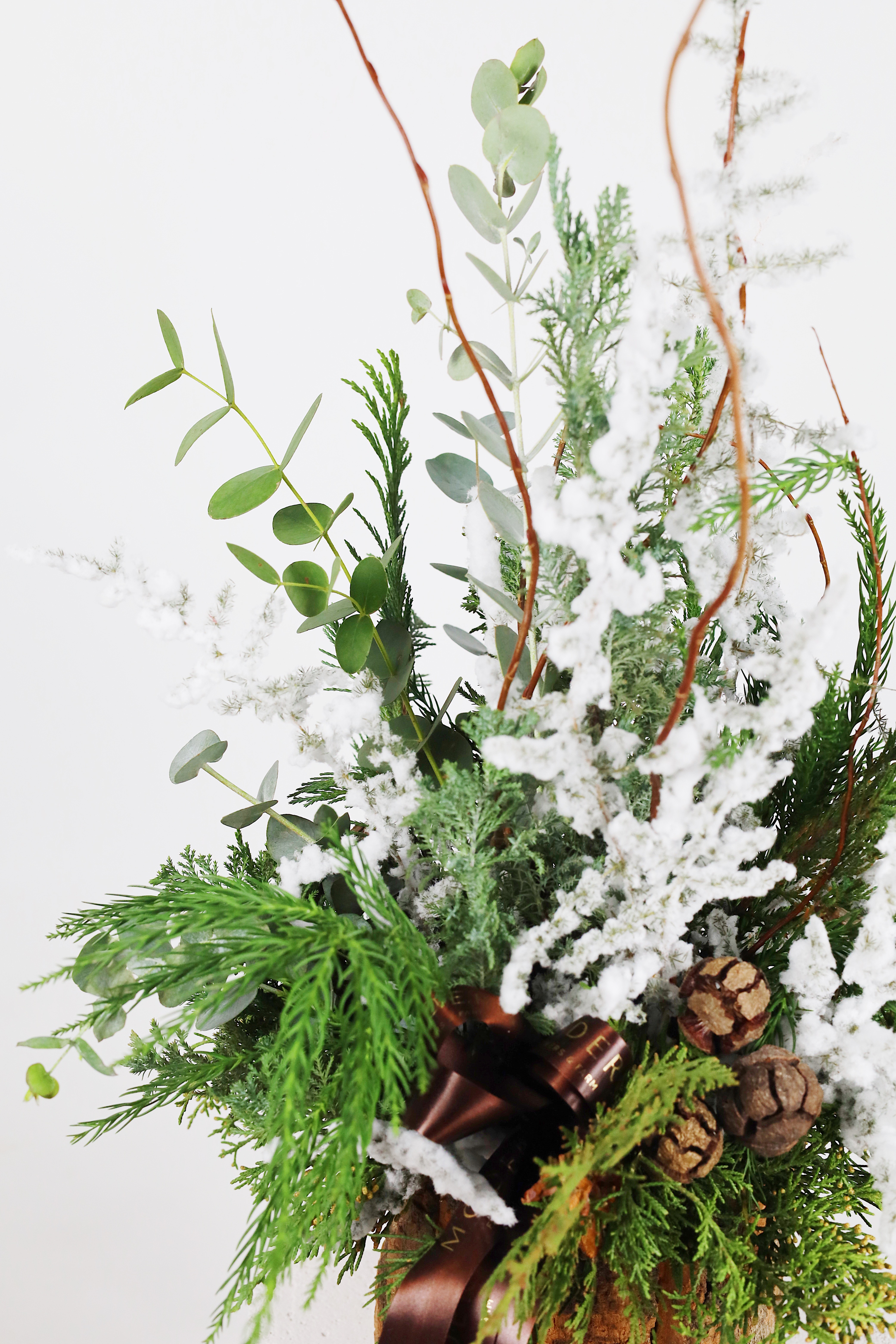 ХВОЙНАЯ КОМПОЗИЦИЯ В ДЕРЕВЯННОМ КАШПО