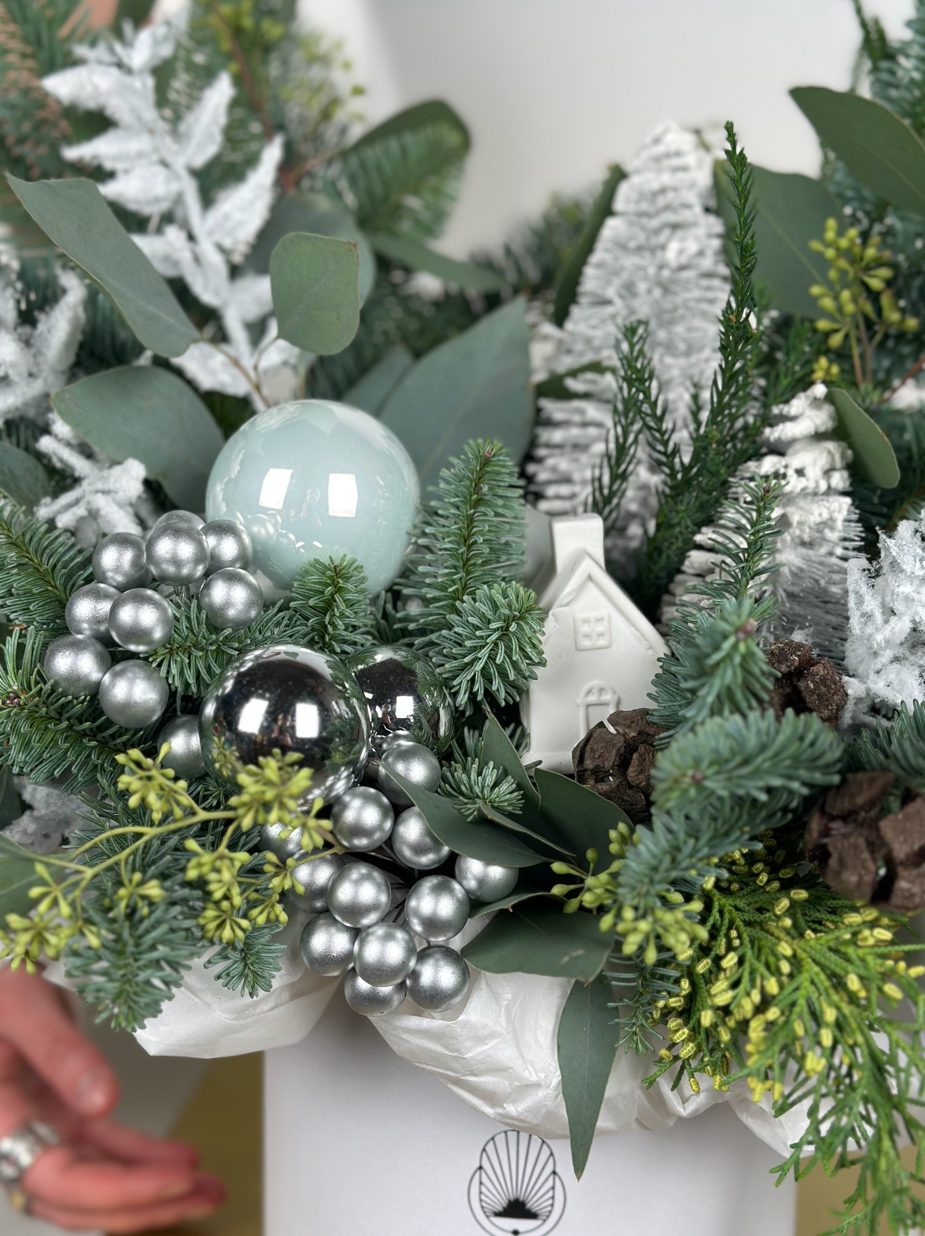 КОМПОЗИЦИЯ ИЗ ХВОИ С НОВОГОДНИМ ДЕКОРОМ