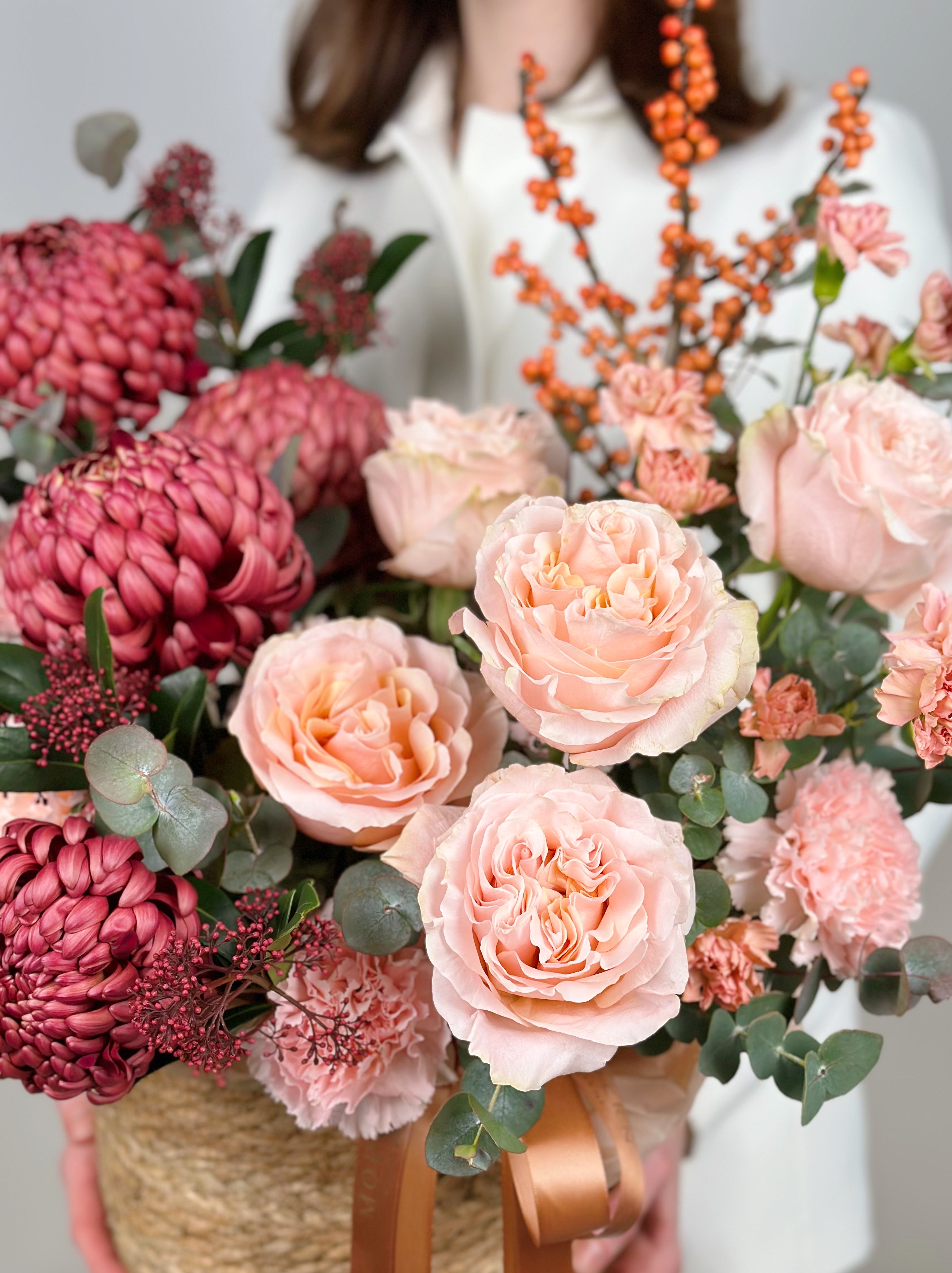 —КОРЗИНА В ОСЕННИХ ТОНАХ С ПИОНОВИДНОЙ РОЗОЙ