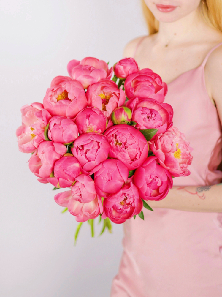 Букет пионов впечатлит получателя приятным ароматом и пышностью нежных фактурных бутонов. Выберите сорт Сара Бернар для романтичного подарка возлюбленной, или впечатляющий Корал Шарм, меняющий оттенок от кораллового к молочному, чтобы порадовать супругу. Завершите композицию красивой упаковкой, подчеркивающей красоту растений — изящной корзиной, дизайнерской бумагой или стильной шляпной коробкой.