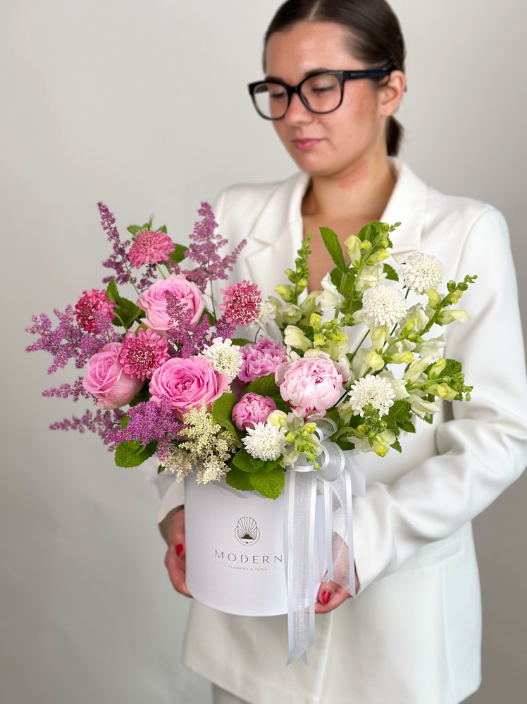 НЕЖНАЯ КОМПОЗИЦИЯ С ПИОНОМ И АСТИЛЬБОЙ